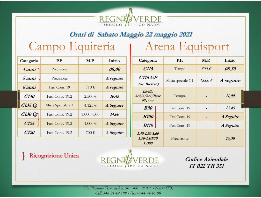 | Sabato 22 maggio 2021 | ||||